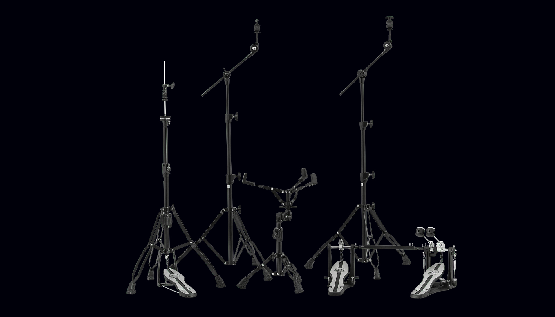 | HP6005 | B600 (x2) Boom Stands, H600 Hi Hat Stand, P610 Bass Drum Pedal, S600 Snare Drum Stand | Double Braced Stands | Omni-Ball Adjuster | Chrome |
