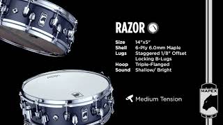 The Razor produces a sharp, articulate, edgy snap at all dynamic levels gleaming with high end brilliance. Never dull, this all maple drum slices through anything in the mix.