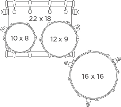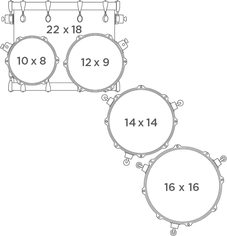 Plies get progressively thicker, depths graduate by 1/2”, and bearing edges change as the drums get larger in diameter. The combination of all of these details creates an amazing symphony in one kit, where each and every drum sounds perfect!