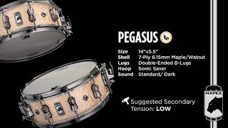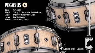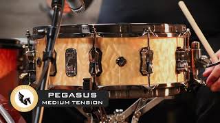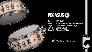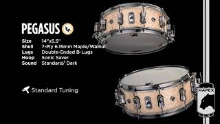 The Pegasus is legendary and mysterious featuring a thinner shell construction producing a slightly darker character from the famed maple/walnut blended shell. Like it's mythological namesake, this drum is grounded but can take flight at a moment's notice.